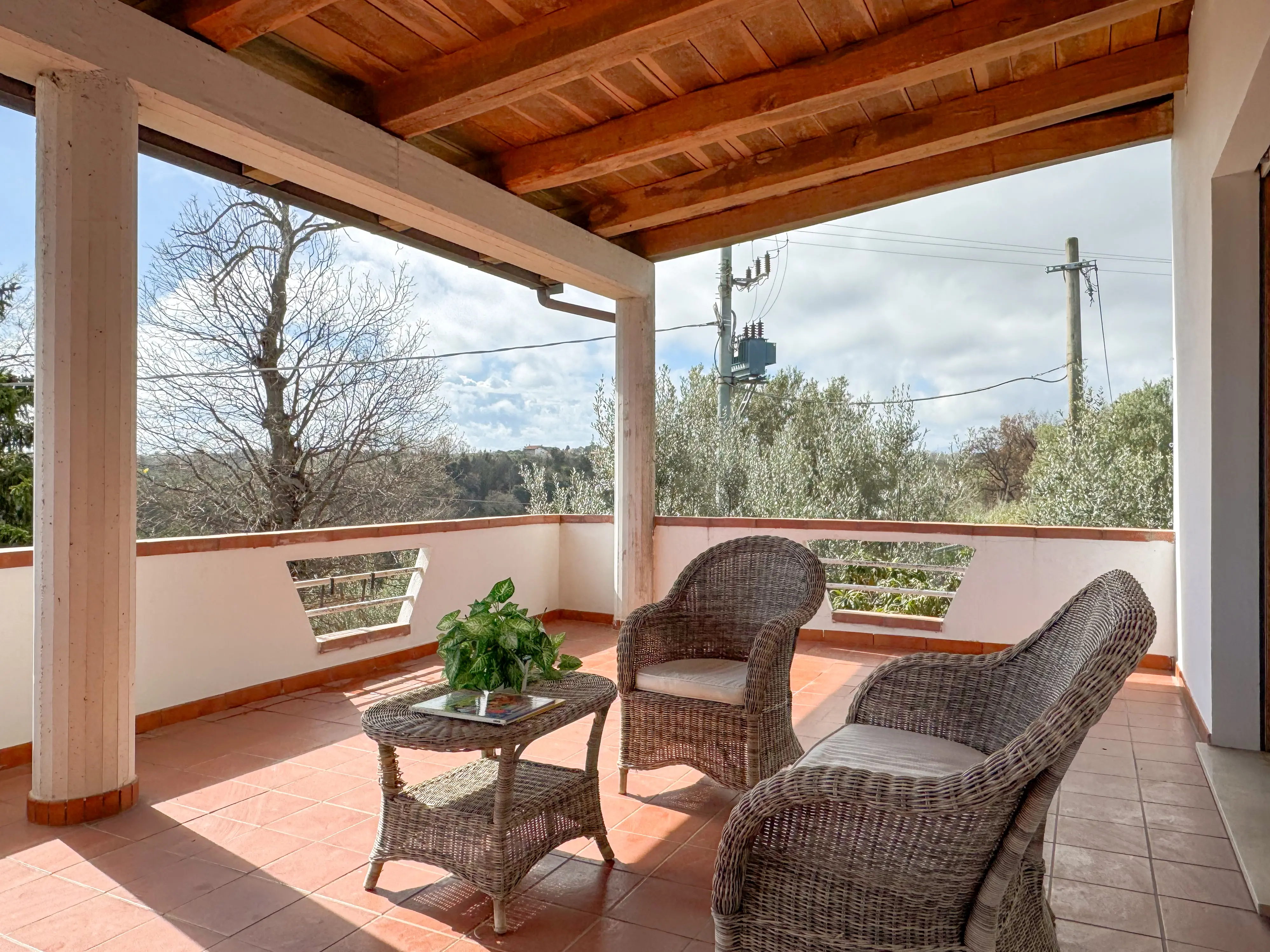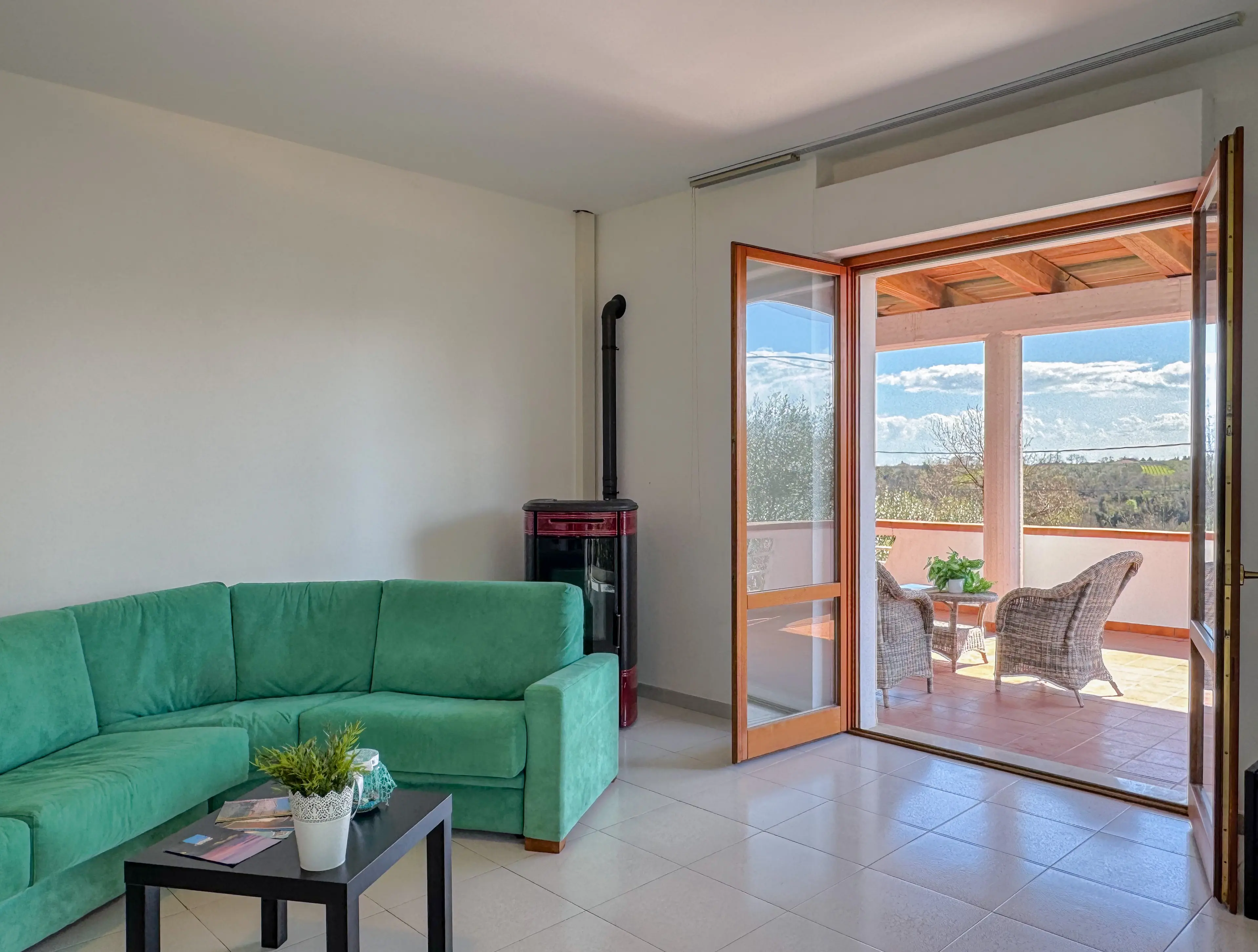 Situato in una tranquilla via immersa nel verde, lontano dal trambusto cittadino, questo appartamento al secondo piano di un'antica casa di campagna offre una vista panoramica e un accesso facile al cristallino mare della Costa dei Trabocchi.