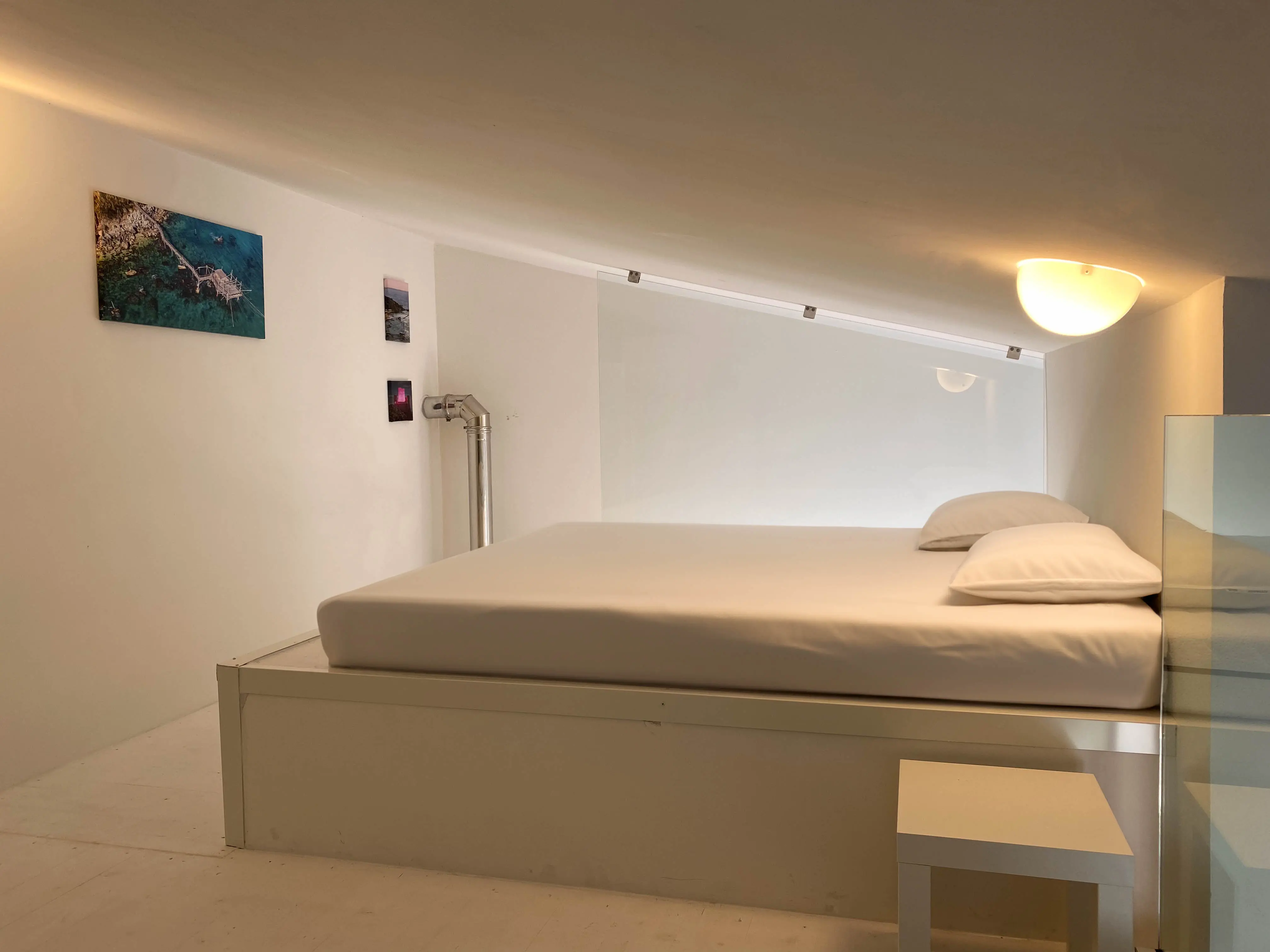 Recentemente ristrutturato con grande cura e attenzione ai dettagli, l’appartamento offre comfort moderni e charme architettonici. L’ampio soppalco ospita un comodo letto matrimoniale, garantendo un sonno tranquillo e rigenerante.