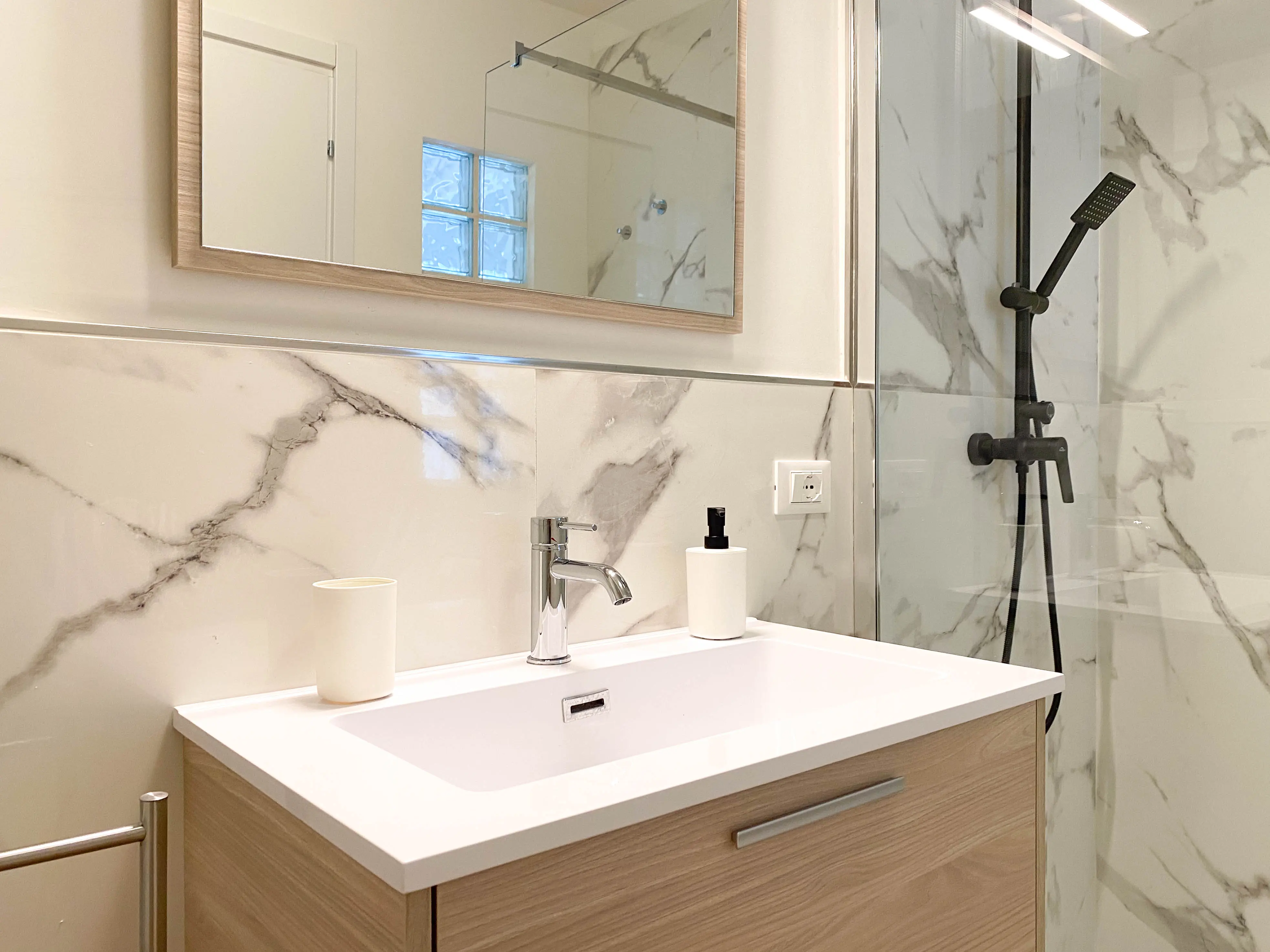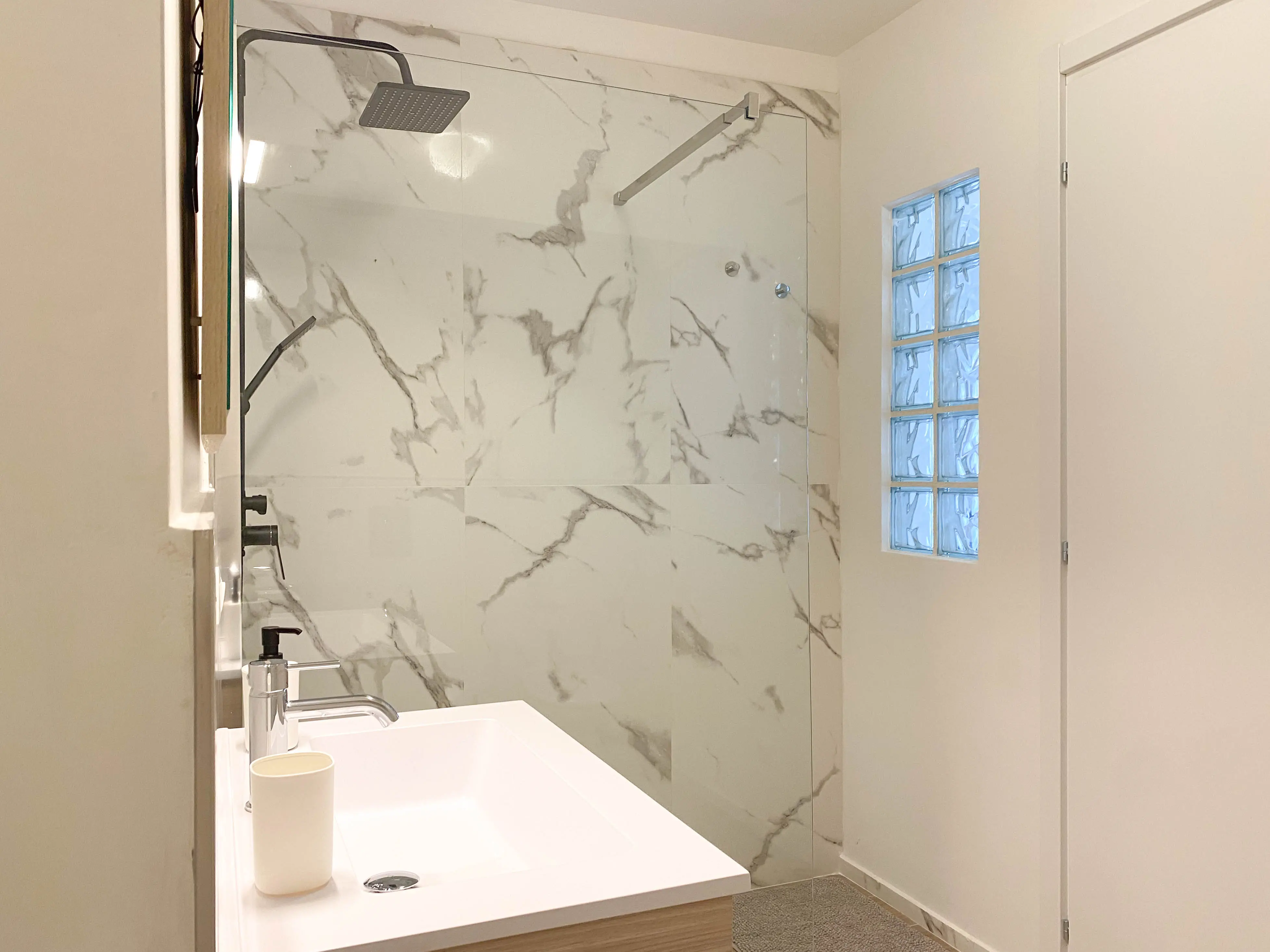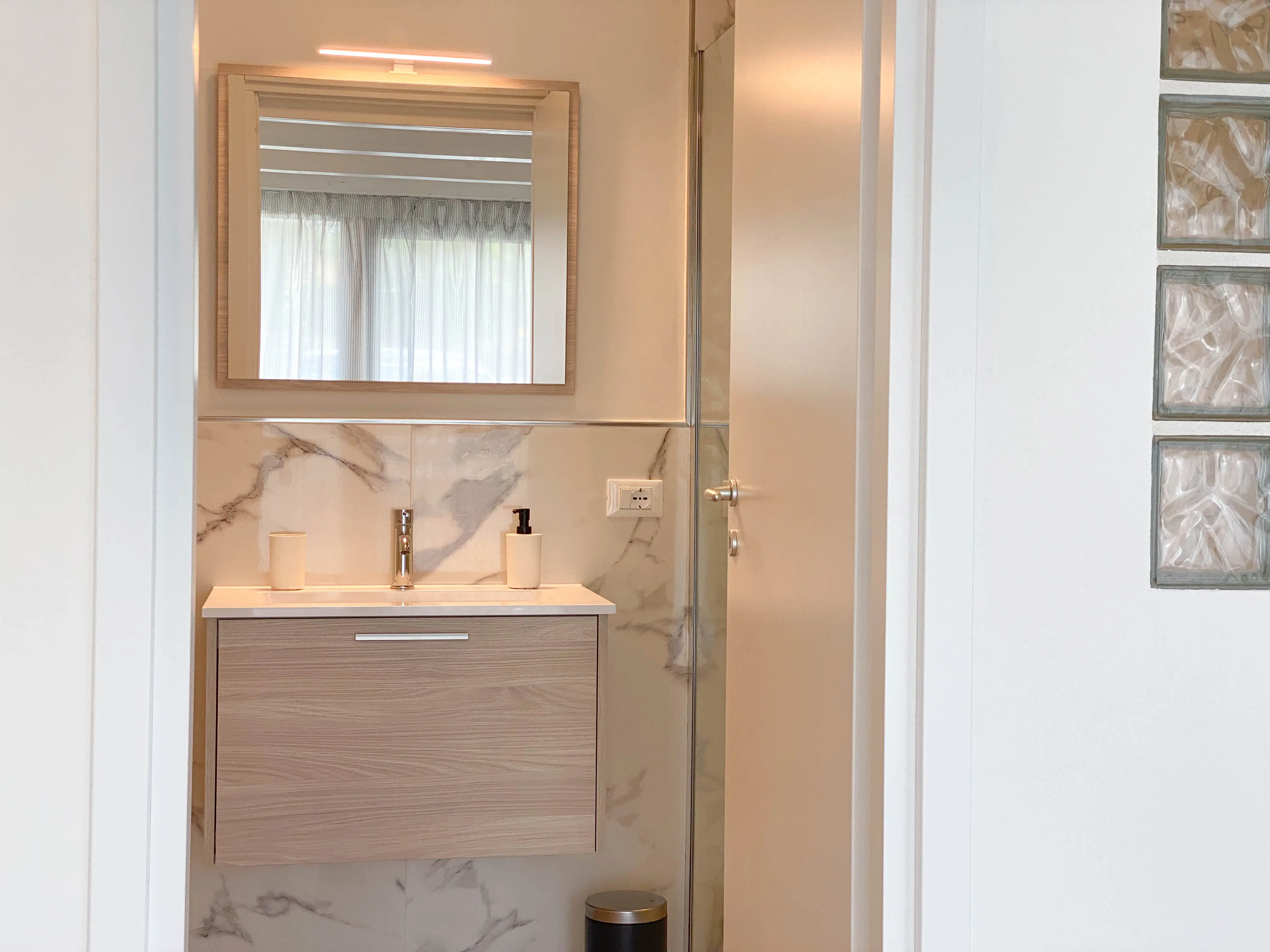 Il bagno è dotato di tutti gli essenziali, compreso di doccia walk-in.