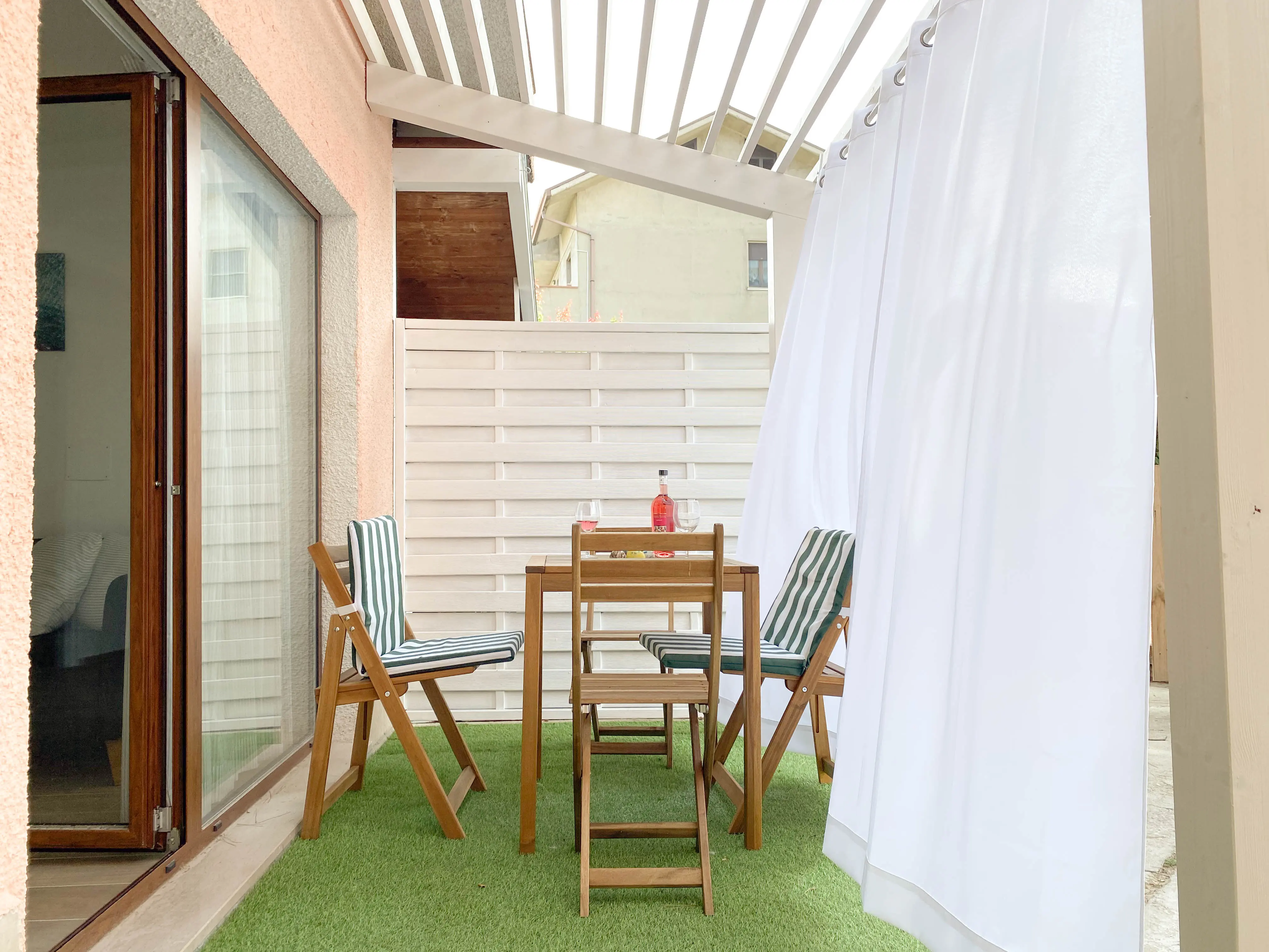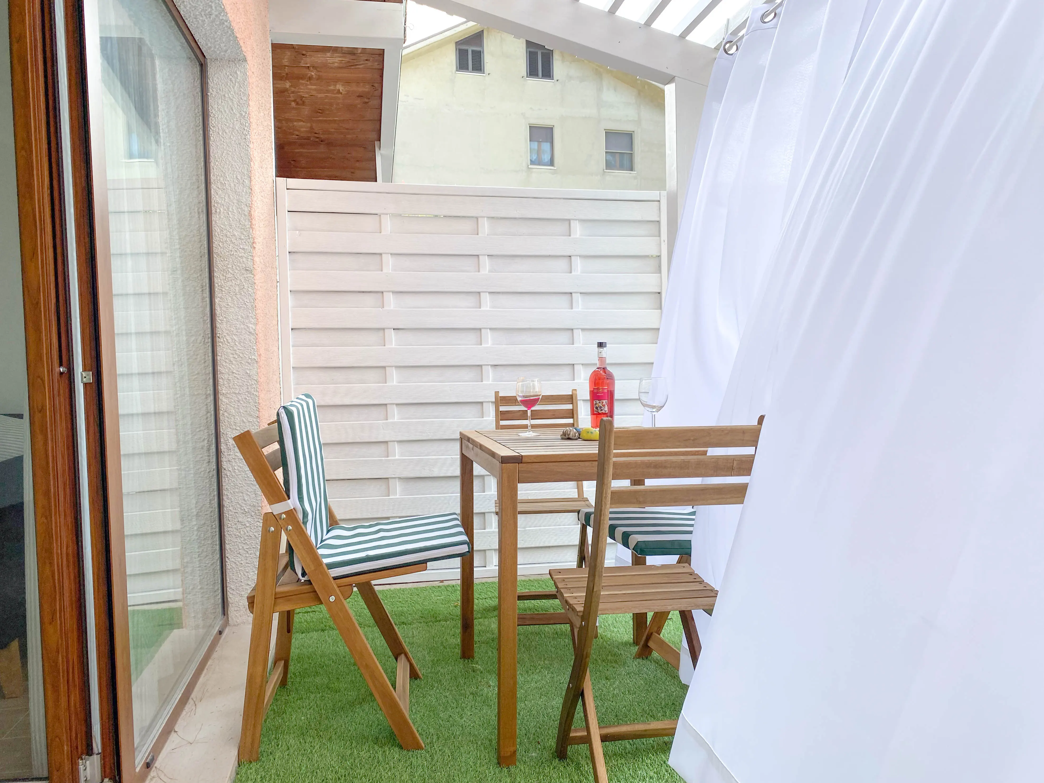 Inoltre, l’appartamento vanta un’intima terrazza all’aperto, arredata con un tavolo e sedie, dove potrete gustare una colazione al sole o una cena romantica a lume di candela.