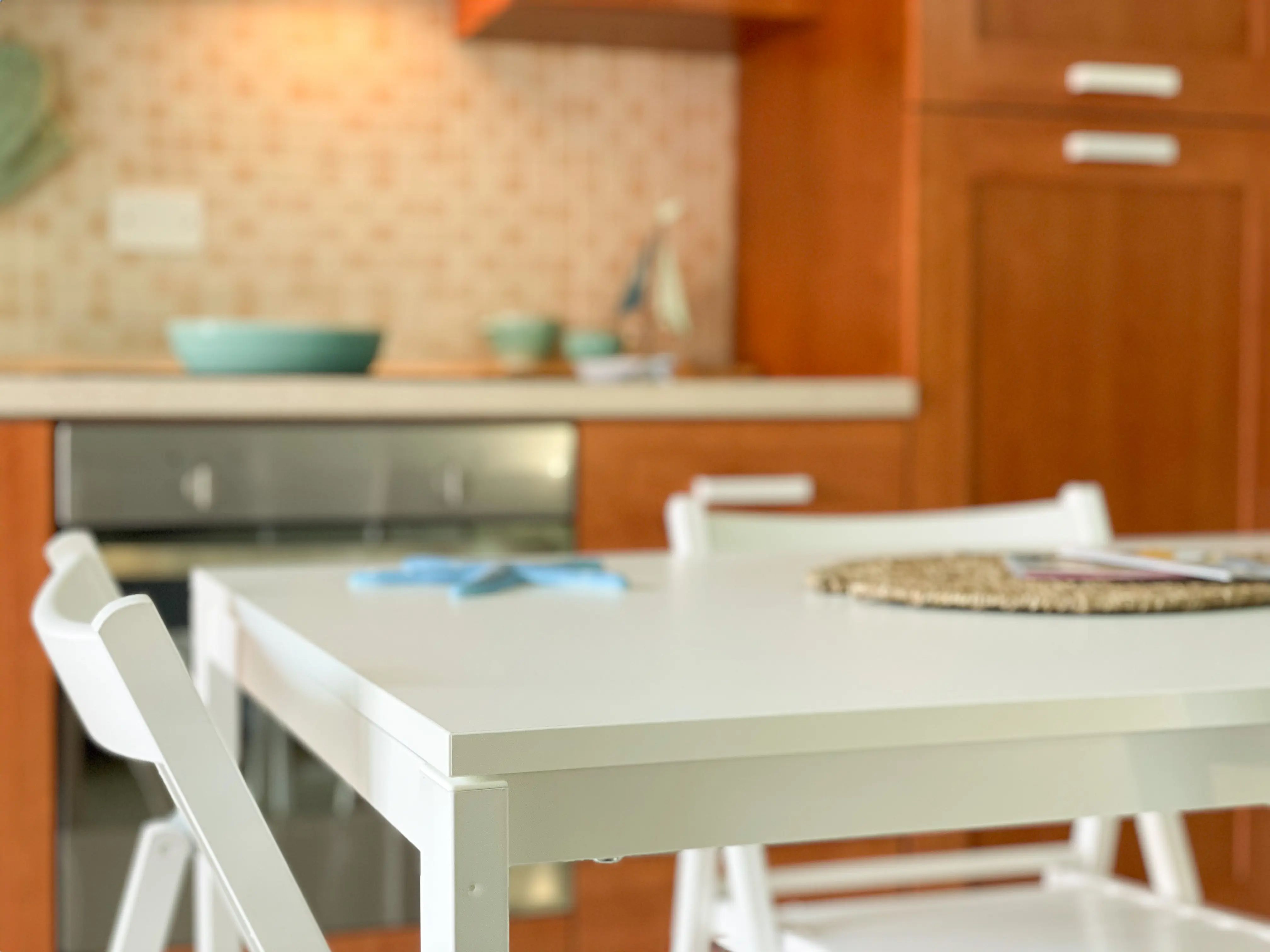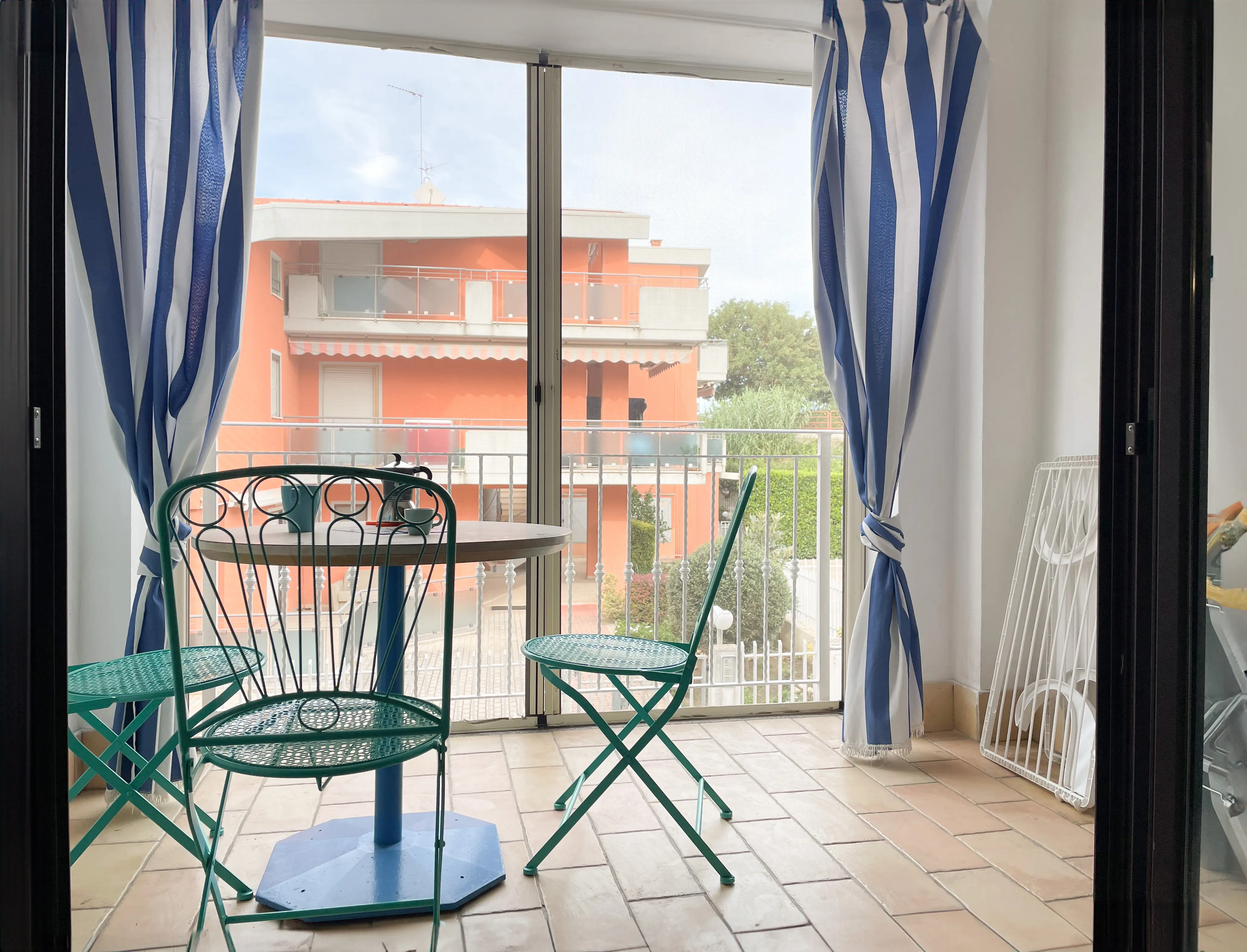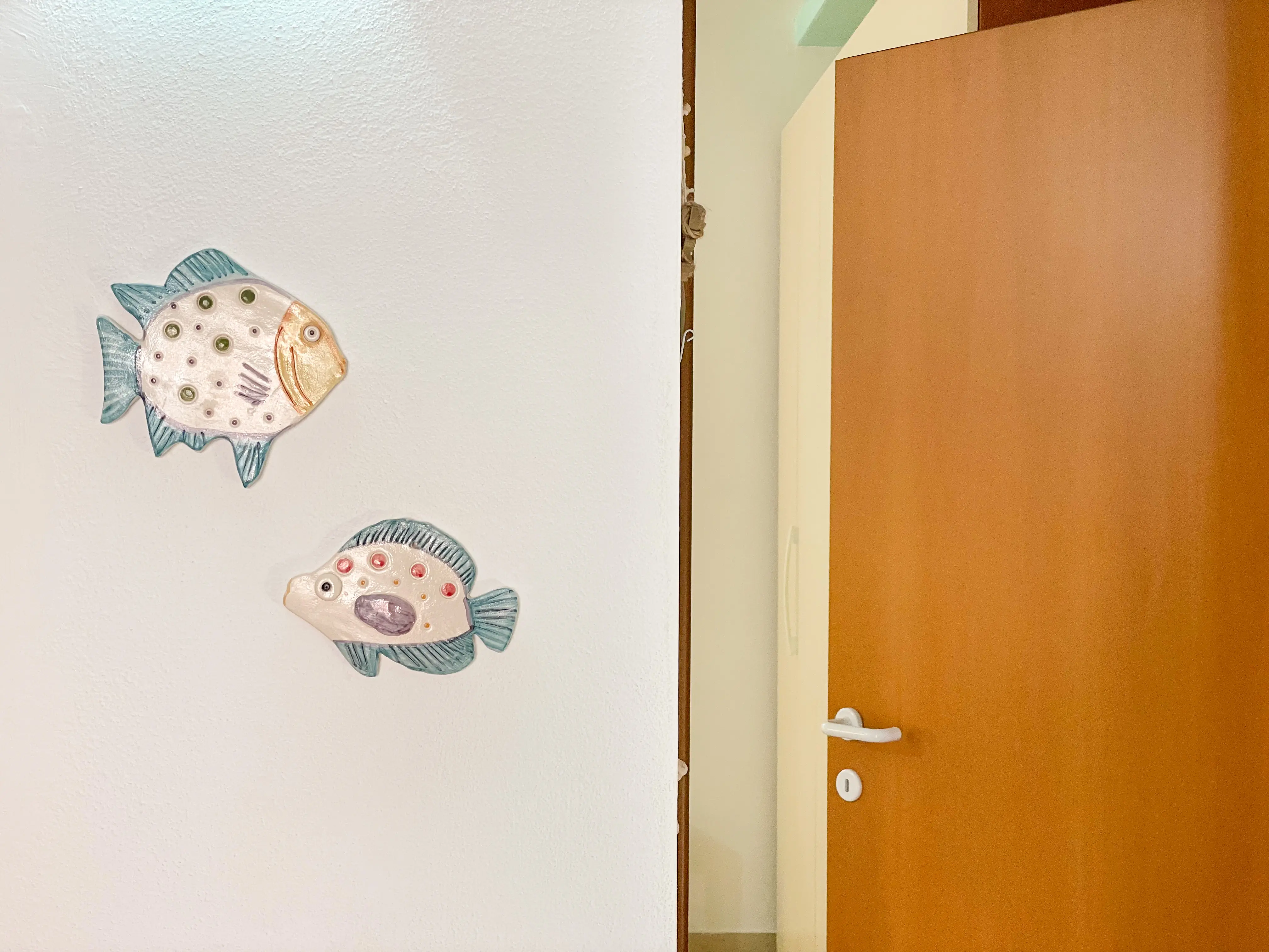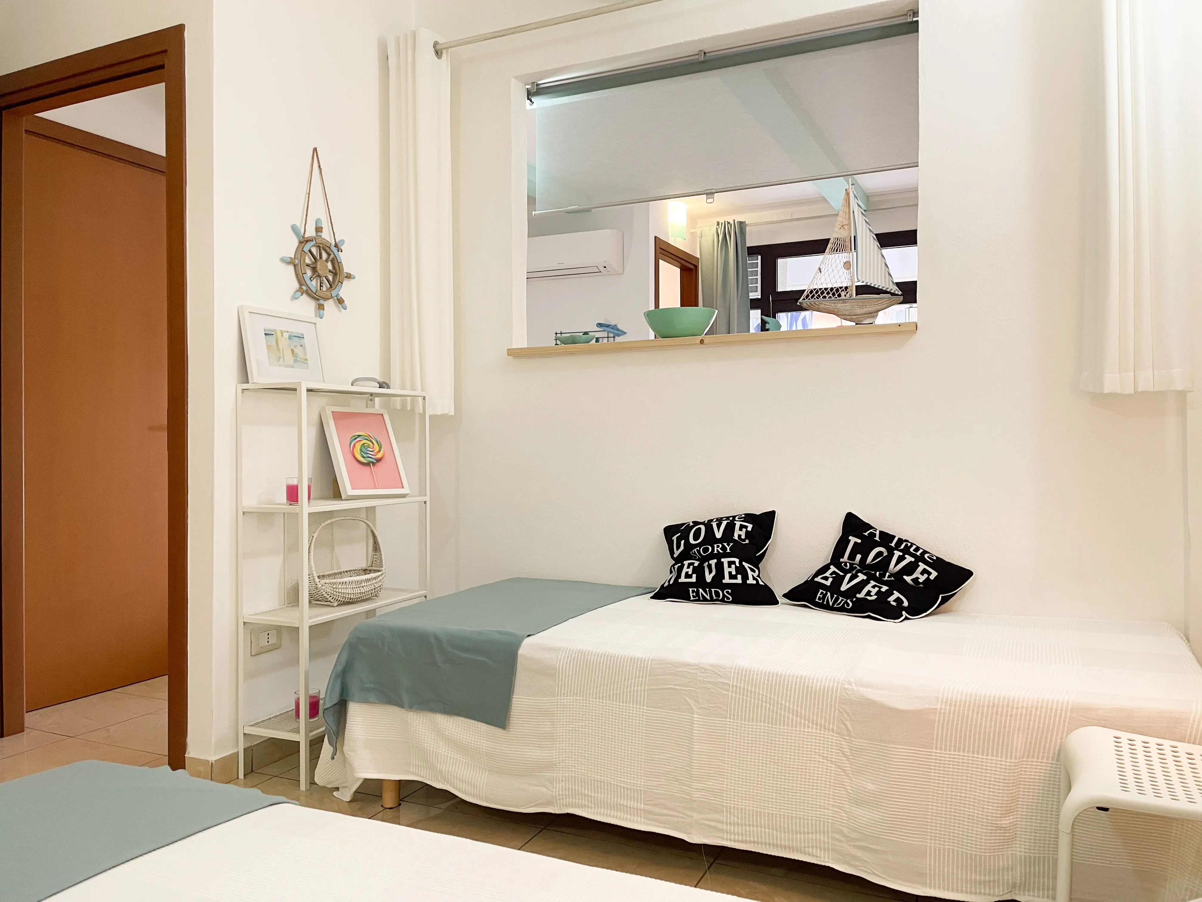 Dalla sala, potrete accedere a un grazioso terrazzino coperto, il luogo ideale per iniziare la giornata con una colazione al fresco. Ammirate uno scorcio del mare che si perde all'orizzonte, regalando un'atmosfera rilassante e suggestiva.