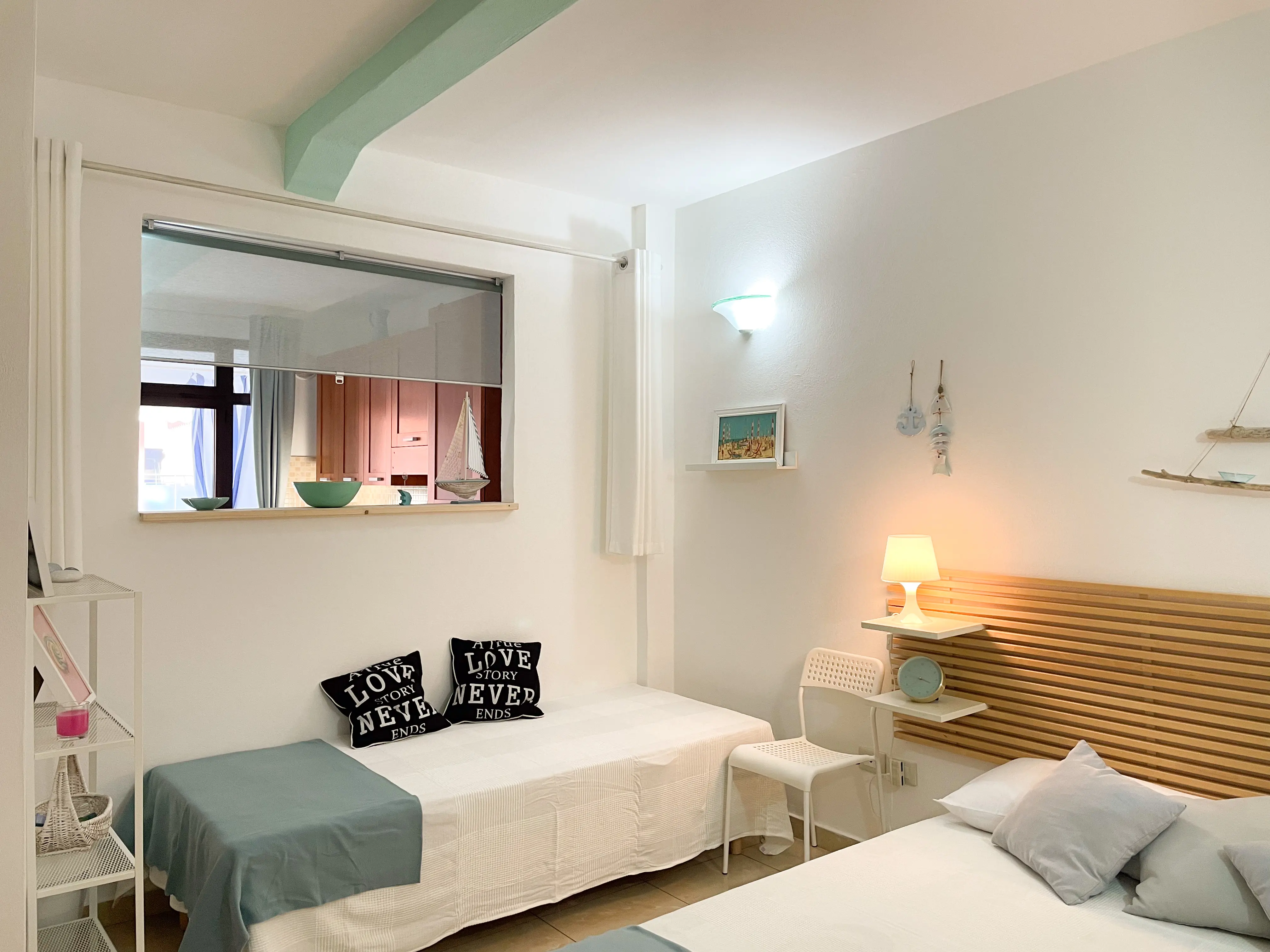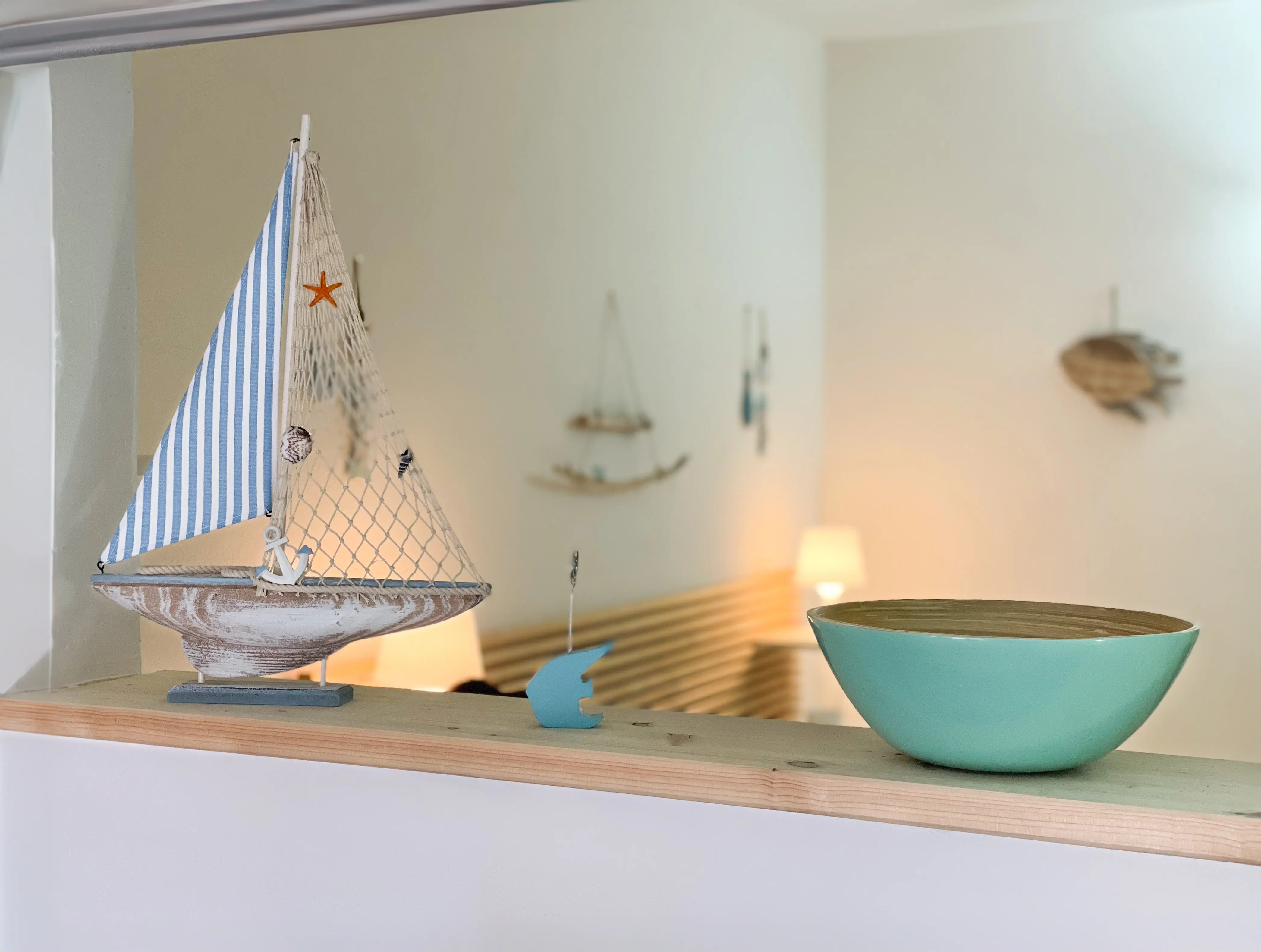 Ristrutturato con cura, il loft offre un'esperienza unica, con dettagli ispirati al tema marino-azzurro che catturano l'essenza del mare. Le travi a vista, dipinte di un vibrante celeste, aggiungono un tocco di personalità e stile all'ambiente.